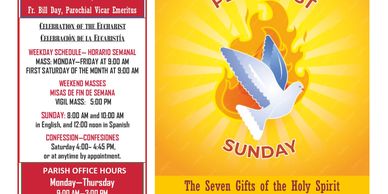 Sunday: 8:00 AM & 10:00 AM Spanish at 12:00 Noon